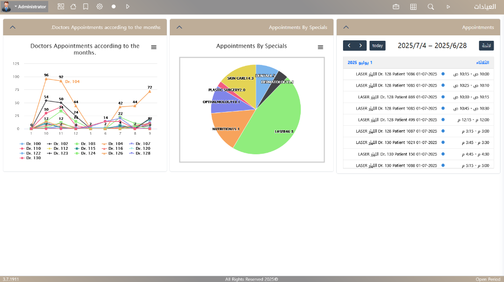 The system allows you to easily book appointments, know the working hours of clinics and doctors, and ensure that all team members adhere to the specified work schedule.