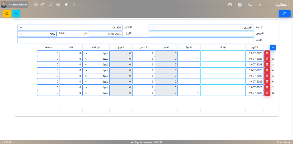 It offers a clear mechanism to apply Value Added Tax (VAT), track all types of discounts available to patients, and supports multiple payment methods (such as cash and electronic transfer), ensuring full transparency for everyone when issuing invoices or processing payments.